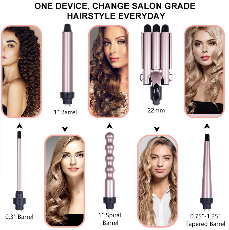 5-in-1 Interchangeable Barrels – Create multiple curl styles with one tool